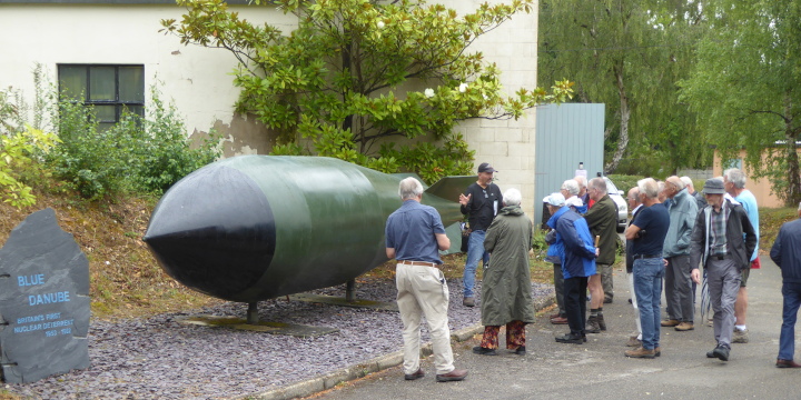 Following that, Richard Eldred, the site owner, gave us a thoroughly engrossing tour around the site, explaining the various components and their function, ranging from the 3 large concrete bunkers which contained the Blue Danube missiles, the 57 locked and alarmed “hutches” which contained the fissile core of the weapons, stored clear of the high explosives in the missiles to avoid accidents, and the double layer perimeter defences, together with attack dogs, designed to keep intruders out. The Blue Danube missiles pack the equivalent of 15 Kilo Tonnes of explosive, which is similar to the bomb dropped on Nagasaki in 1945. Richard’s narrative contained endless anecdotes, including the story of how Richard’s parents bought the site in 1966, his father reputedly going out for a pint of milk and a newspaper, stopping by at an Estate Agents and returning home having bought a Former Atomic Weapons Bunker!